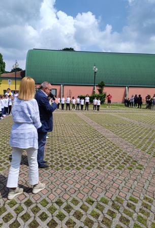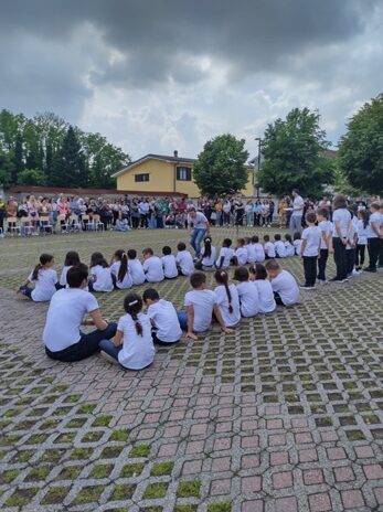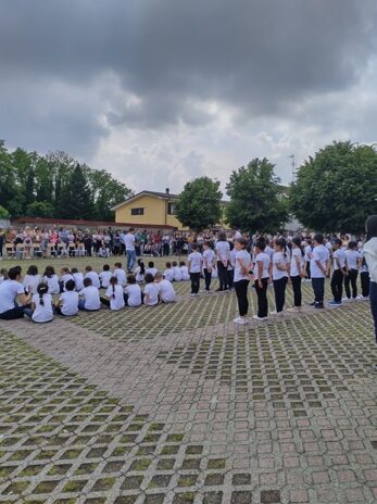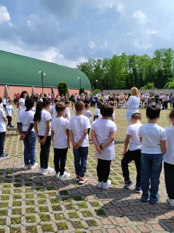 Il giorno 25 maggio alle ore 14,30 è stato realizzato il saggio di fine anno scolastico “Concerto di pace” alla presenza della Preside Dott.ssa Guaschi, dell’Assessore Bovo e dei parenti degli alunni delle cinque classi.
