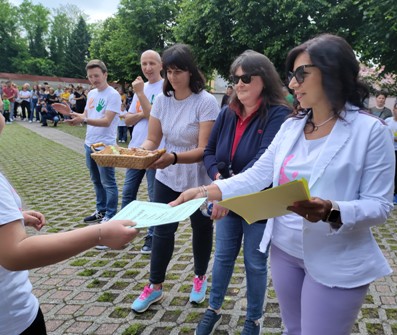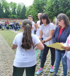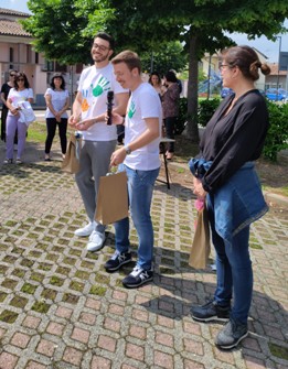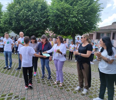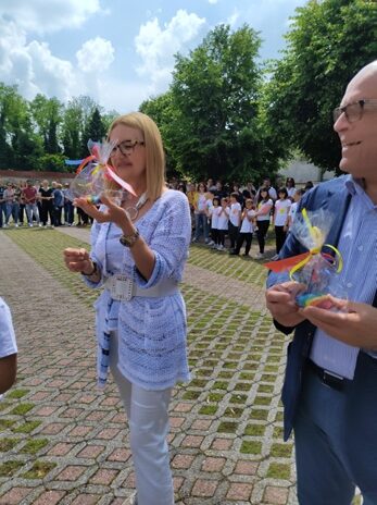 Alla Dirigente scolastica e all’Assessore viene offerto un piccolo dono preparato dai bambini.