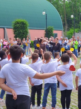 Grazie alla preziosa collaborazione degli esperti Prof. Pellicone (ed. musicale), Prof. Mazza (ed.fisica), Prof.ssa Bottone (inglese) sono stati realizzati canti e coreografie il cui argomento di base è stato quello della pace, sfondo integratore di tutti i progetti presenti nel Piano dell’Offerta Formativa per quest’anno scolastico.