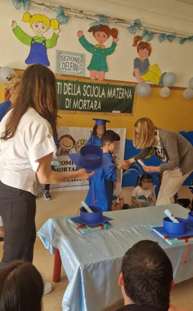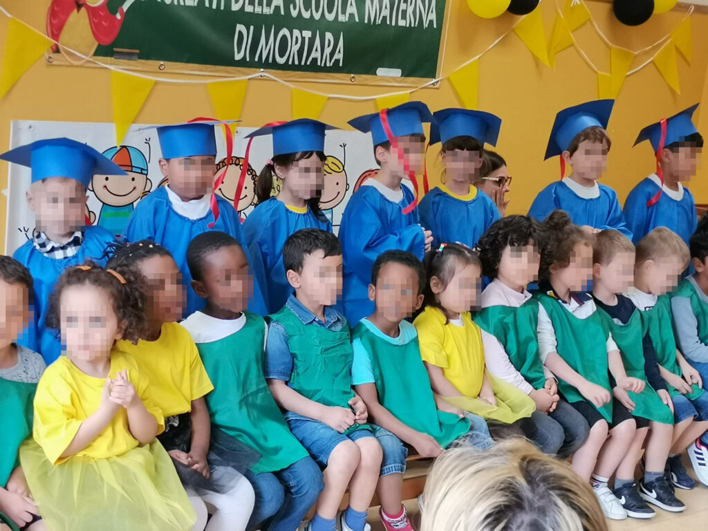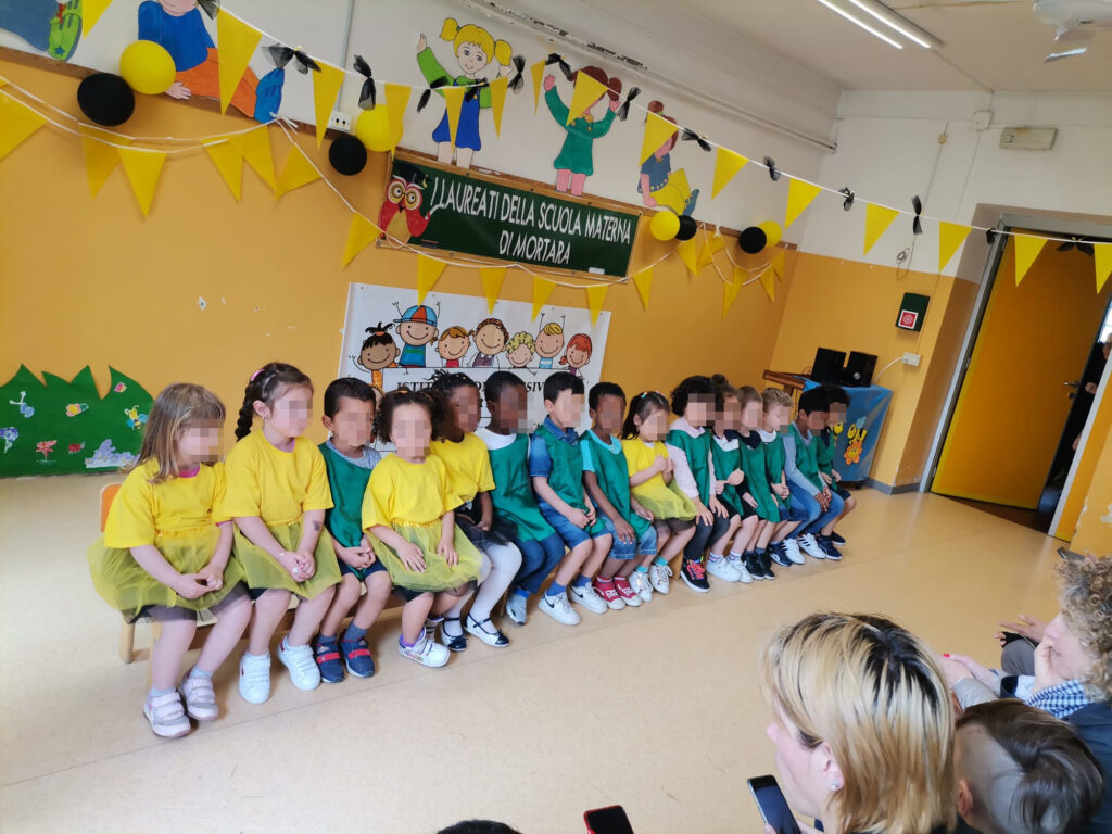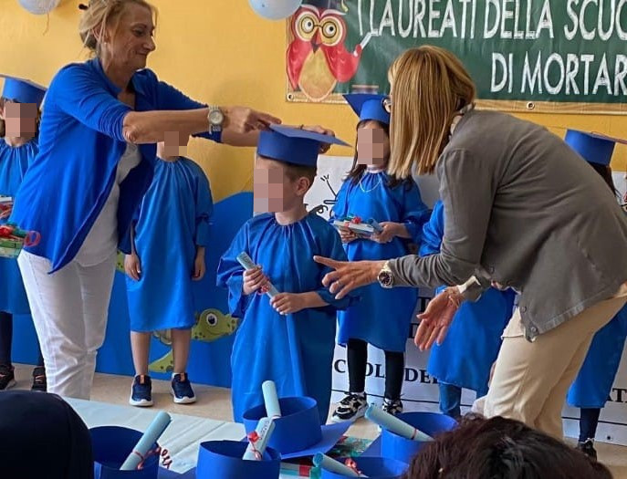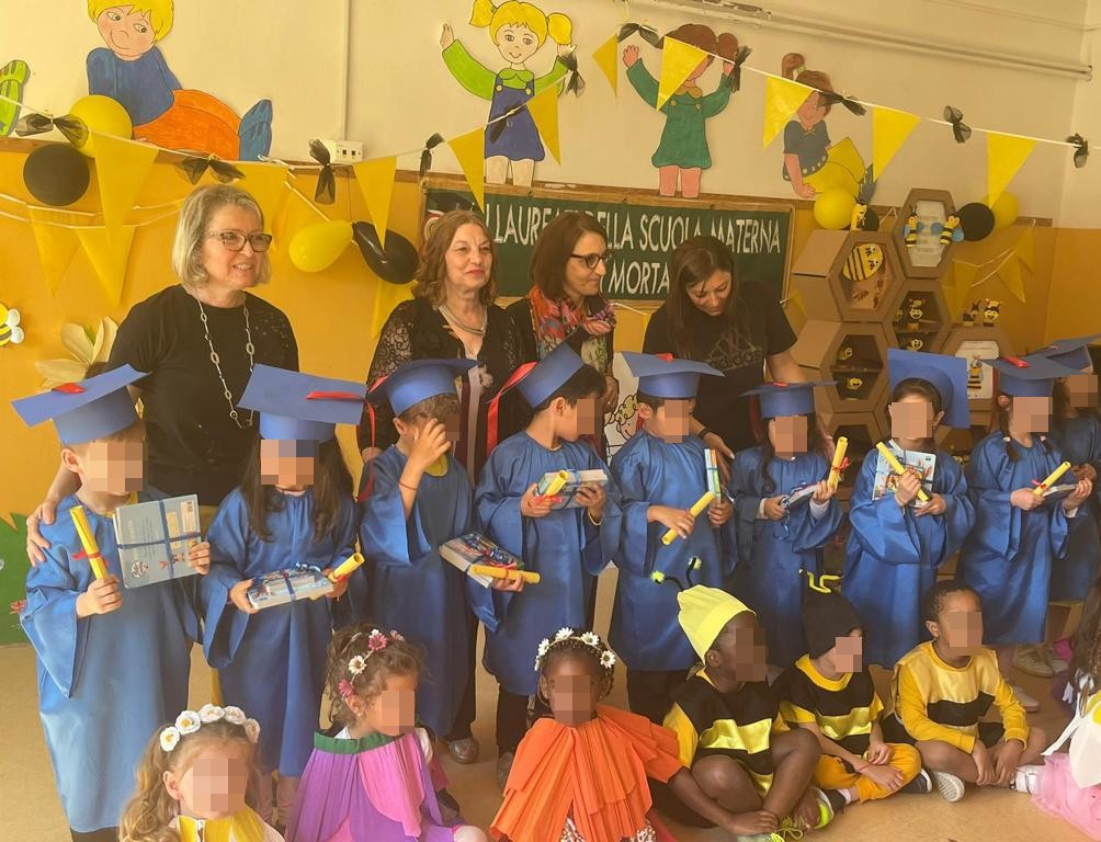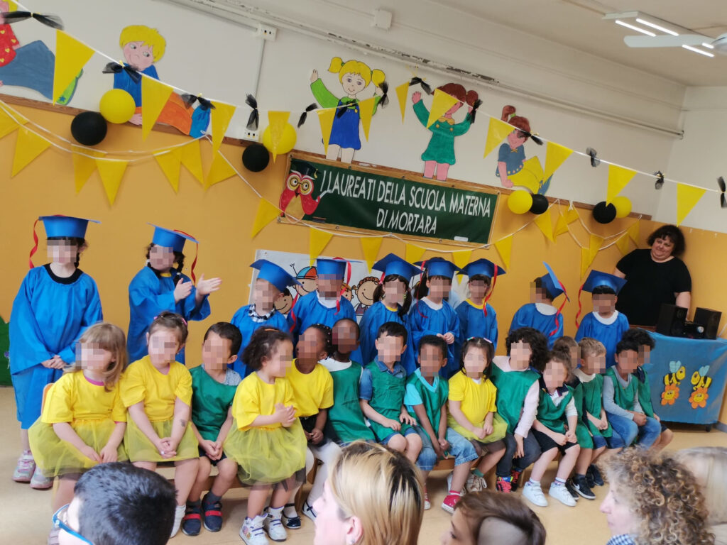Il giorno 23 maggio, i bambini della Scuola dell’Infanzia, che sono in procinto di compiere il primo passo verso la Scuola Primaria hanno ricevuto i “diplomi”. Durante la festa, davanti a nonni e genitori emozionati, si sono esibiti in canti e coreografie indossando il cappellino quadrato da laureato e hanno presentato al pubblico “I giorni della scuola” inno della scuola primaria Olivelli cantandolo egregiamente.
