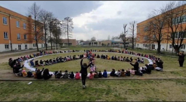 Gli alunni della Scuola Primaria di Mortara e della Scuola dell’Infanzia si riuniti venerdì 12 marzo per inviare la loro richiesta di pace.