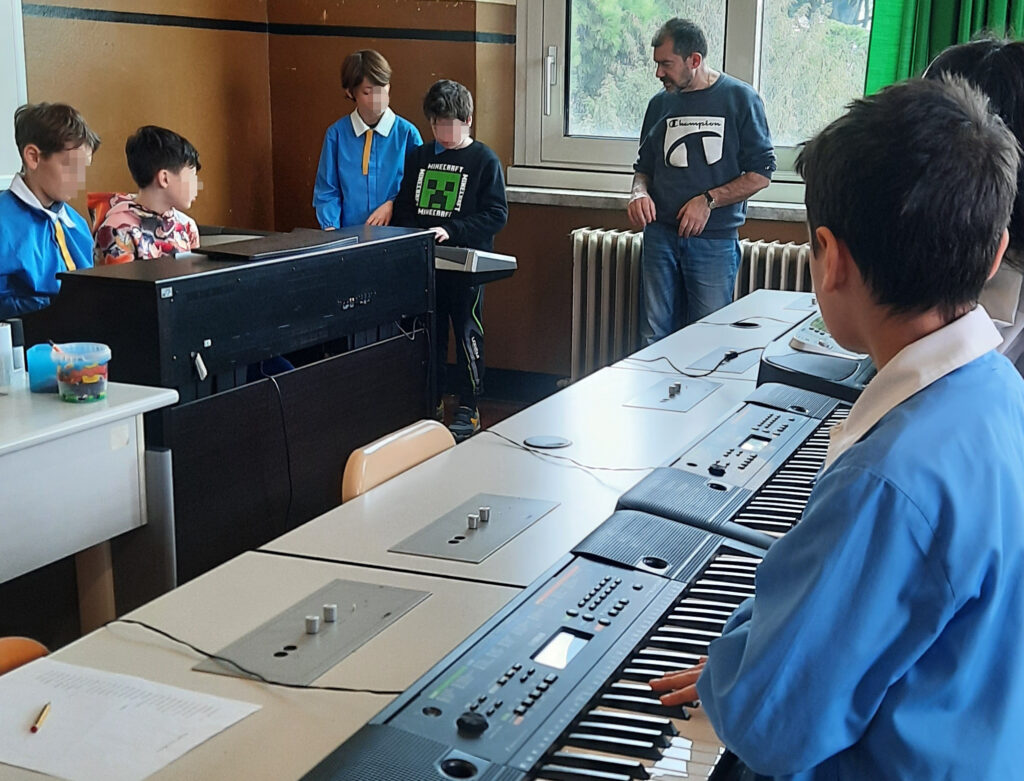 Con tale corso si è inteso offrire agli alunni la possibilità di consolidare l’esperienza esplorativa, produttiva e creativa del mondo dei suoni, attraverso la conoscenza del pianoforte, del violino e della chitarra e favorire la crescita della motivazione al fare musica, consolidare il senso ritmico e migliorare il controllo del proprio modo di operare, anche in relazione agli altri.