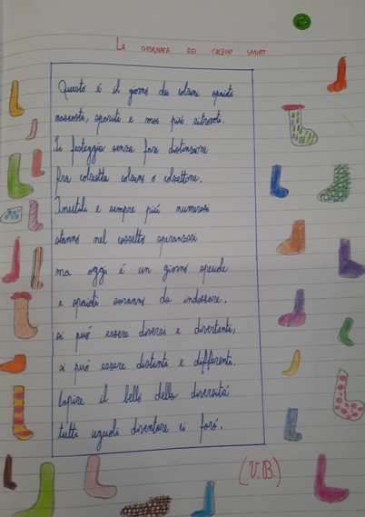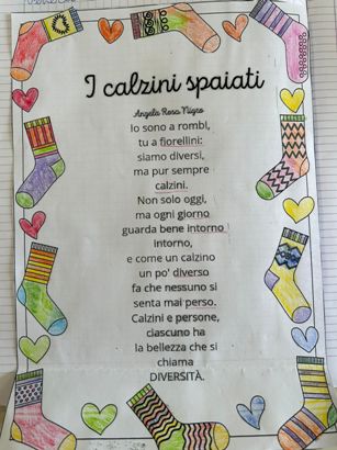 Il simbolo di questa giornata, celebrata quest’anno il 3 febbraio, sono i calzini spaiati. Anche noi come i calzini spaiati, siamo tutti diversi; dobbiamo imparare ad accettarci, apprezzando ciò che ci rende unici!