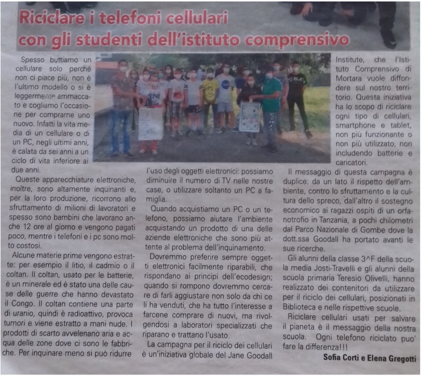 “SENSIBILIZZAZIONE AL RICICLO, IN PARTICOLARE DEGLI STRUMENTI TECNOLOGICI PIÙ DIFFUSI ANCHE TRA I RAGAZZI: I CELLULARI”