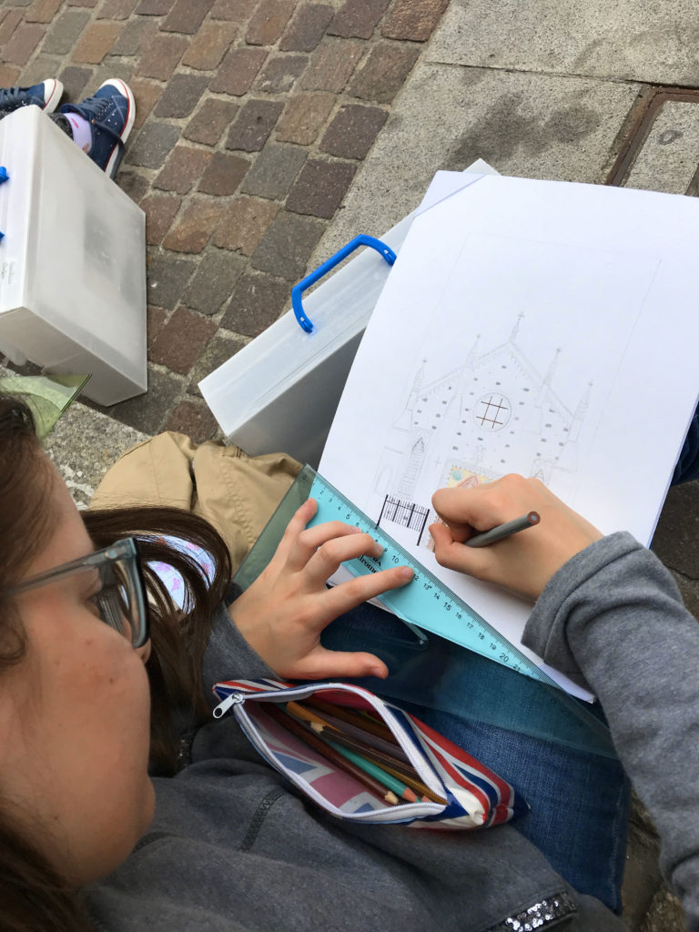 Gli alunni che hanno partecipato al progetto sono stati coinvolti nel realizzare all’aperto per la prima volta dei disegni dal vero, dovendo riprodurre una tra le architetture più conosciute del luogo: la Basilica di San Lorenzo a Mortara. L’attività all’esterno ha prodotto risultati positivi e curiosità per lo stile gotico lombardo, ricco di particolari. Durante le ore di progetto, gli studenti coinvolti hanno mostrato un’attenzione particolare nel portare a compimento l’elaborato.