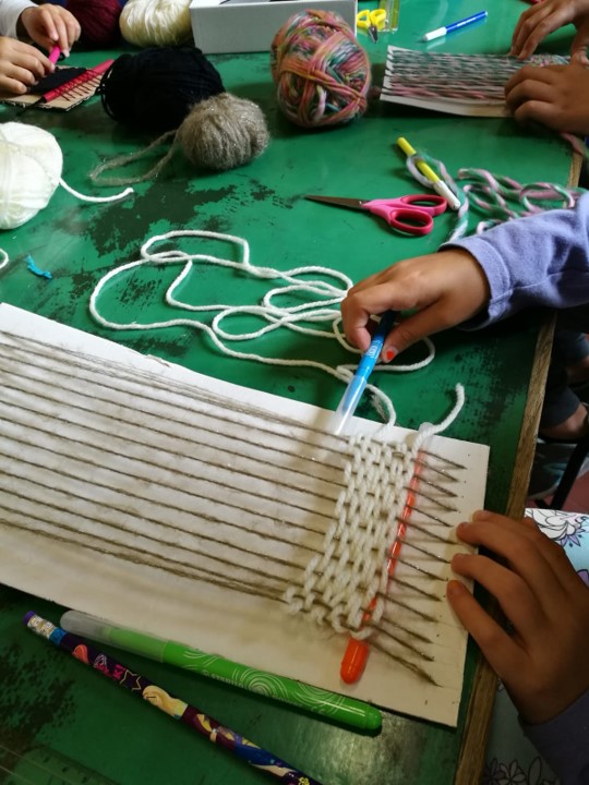 Con la lana e costruendosi un semplice e rudimentale telaio, i bambini sono diventati tessitori destreggiandosi tra trama ed ordito.