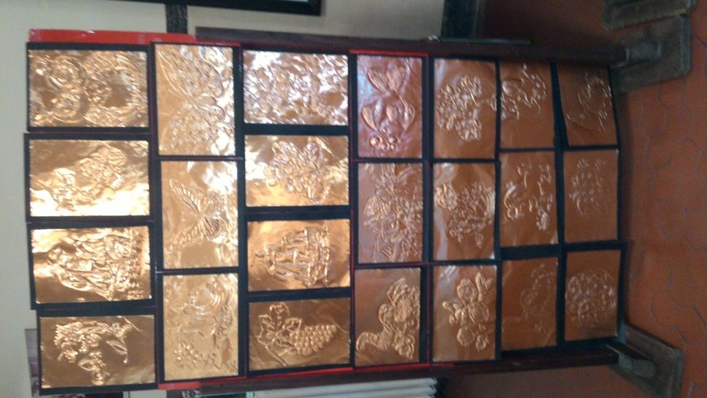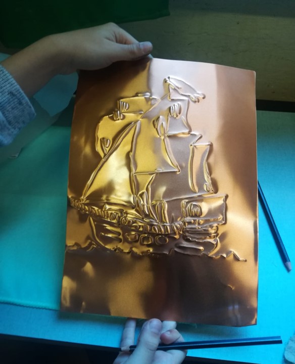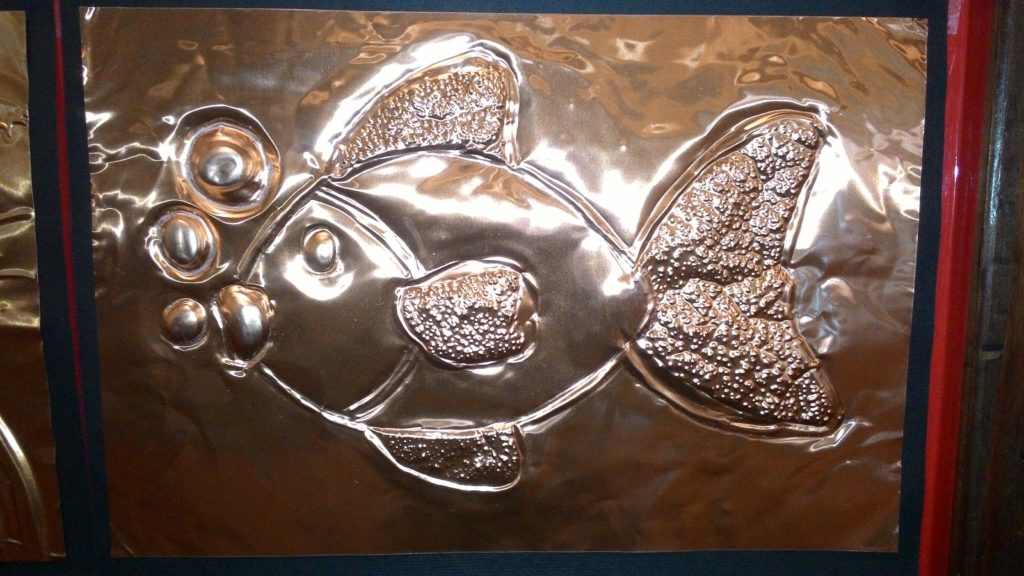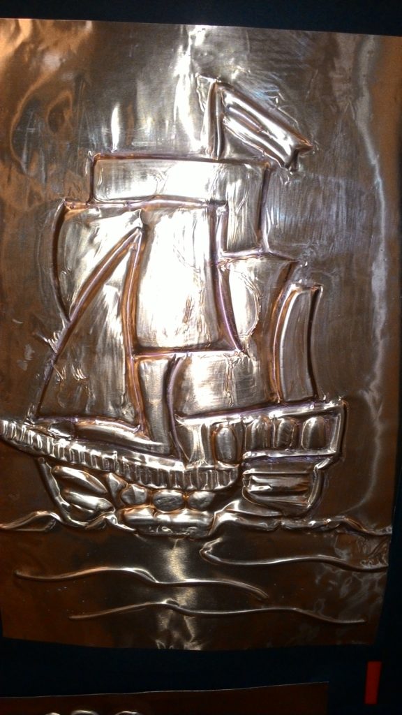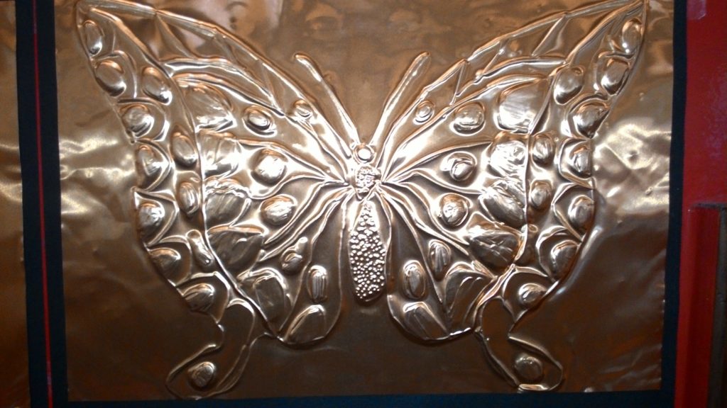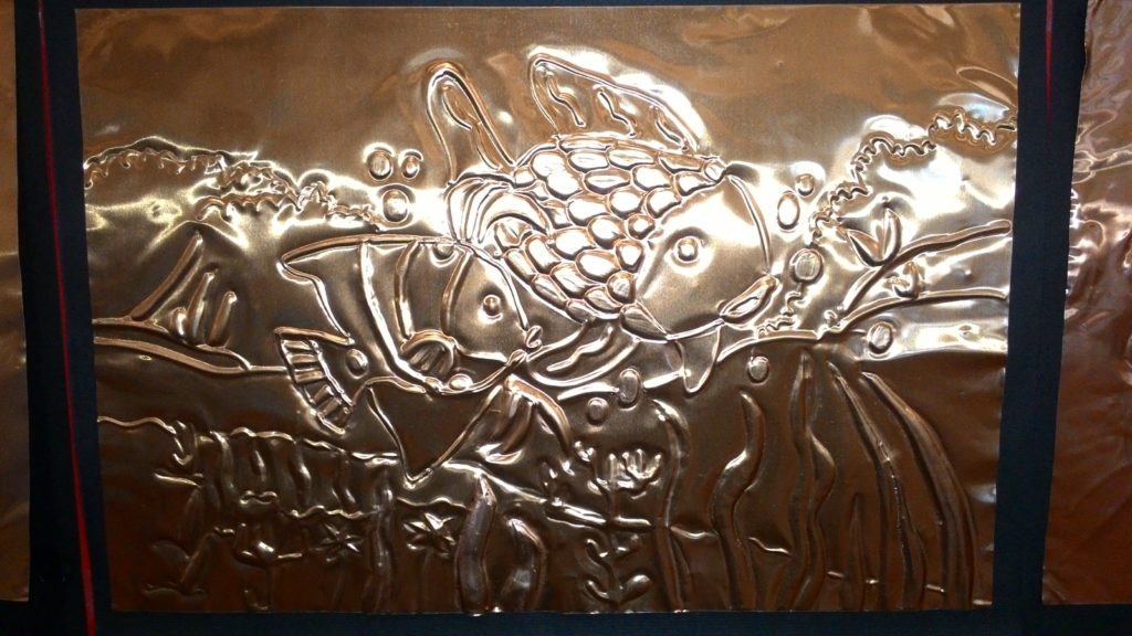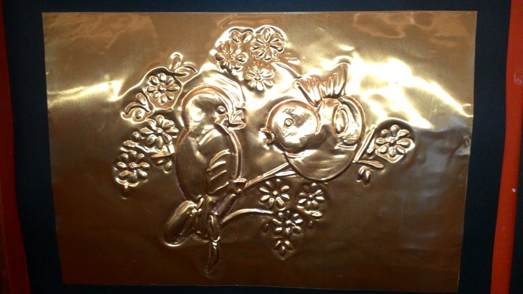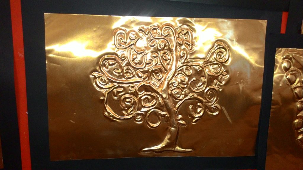 Ed infine, hanno realizzato disegni in un modo veramente speciale: sbalzando una lamina di rame.