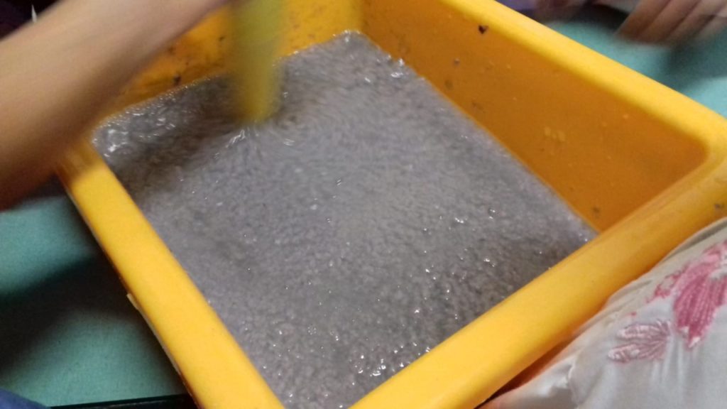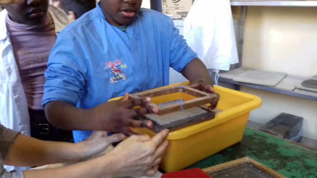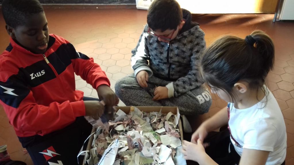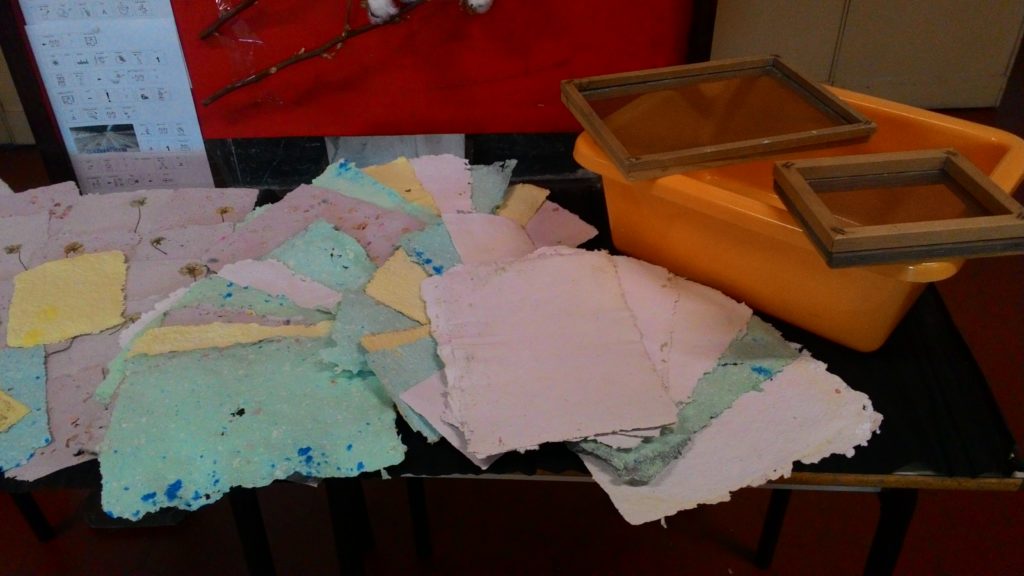 I bambini hanno poi appreso che dobbiamo l’invenzione della carta ai Cinesi. Sono così stati guidati a realizzare carta in modo sostenibile.