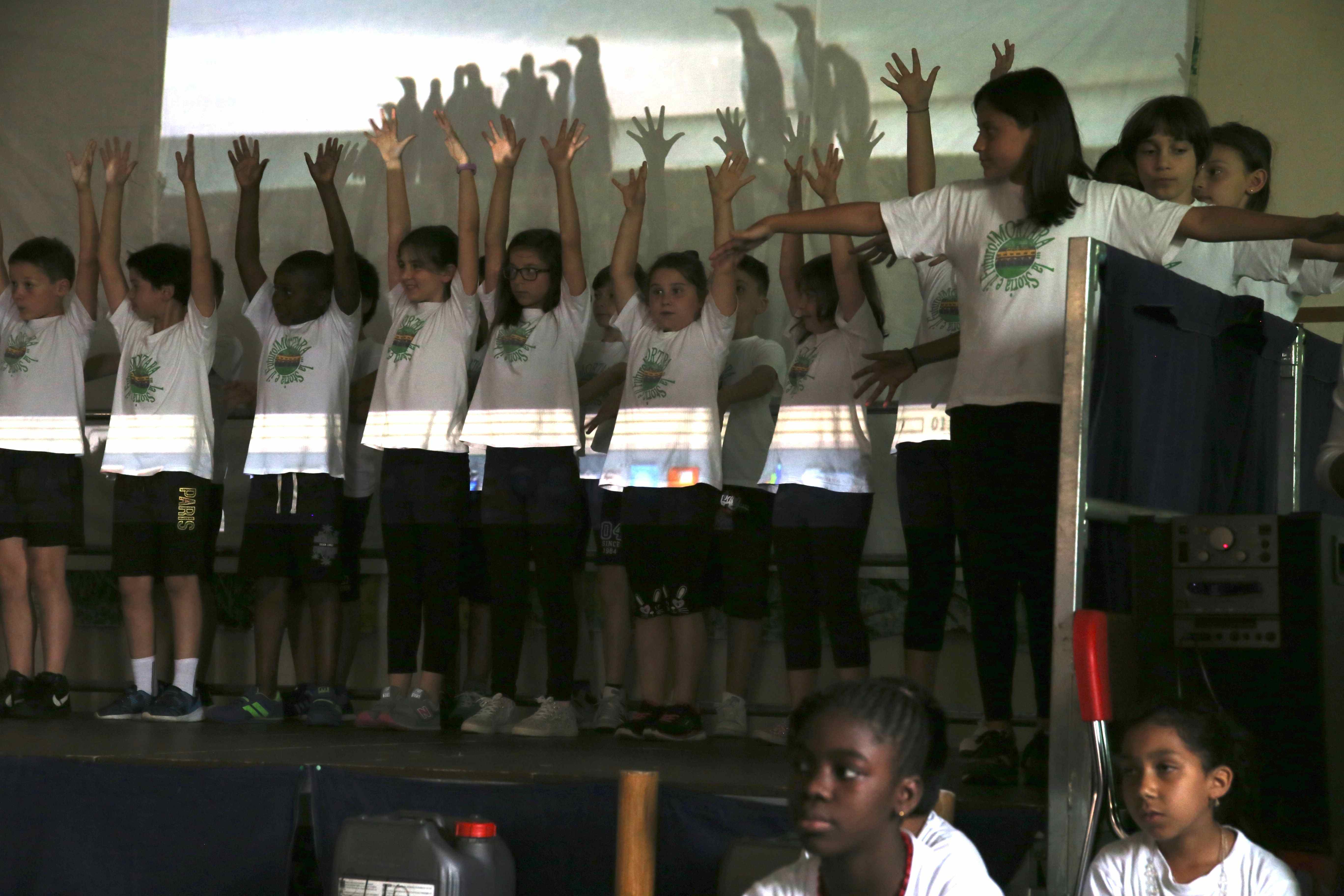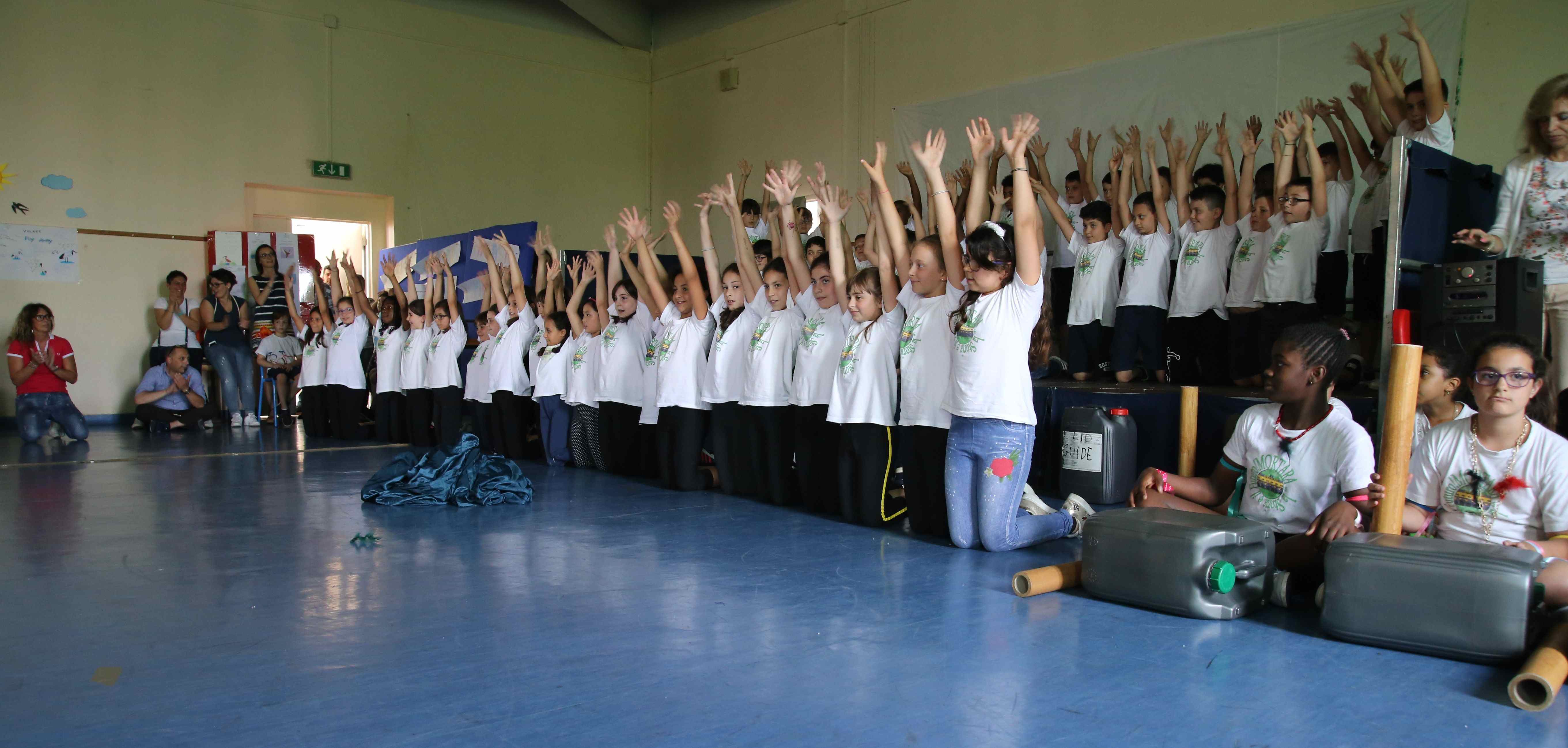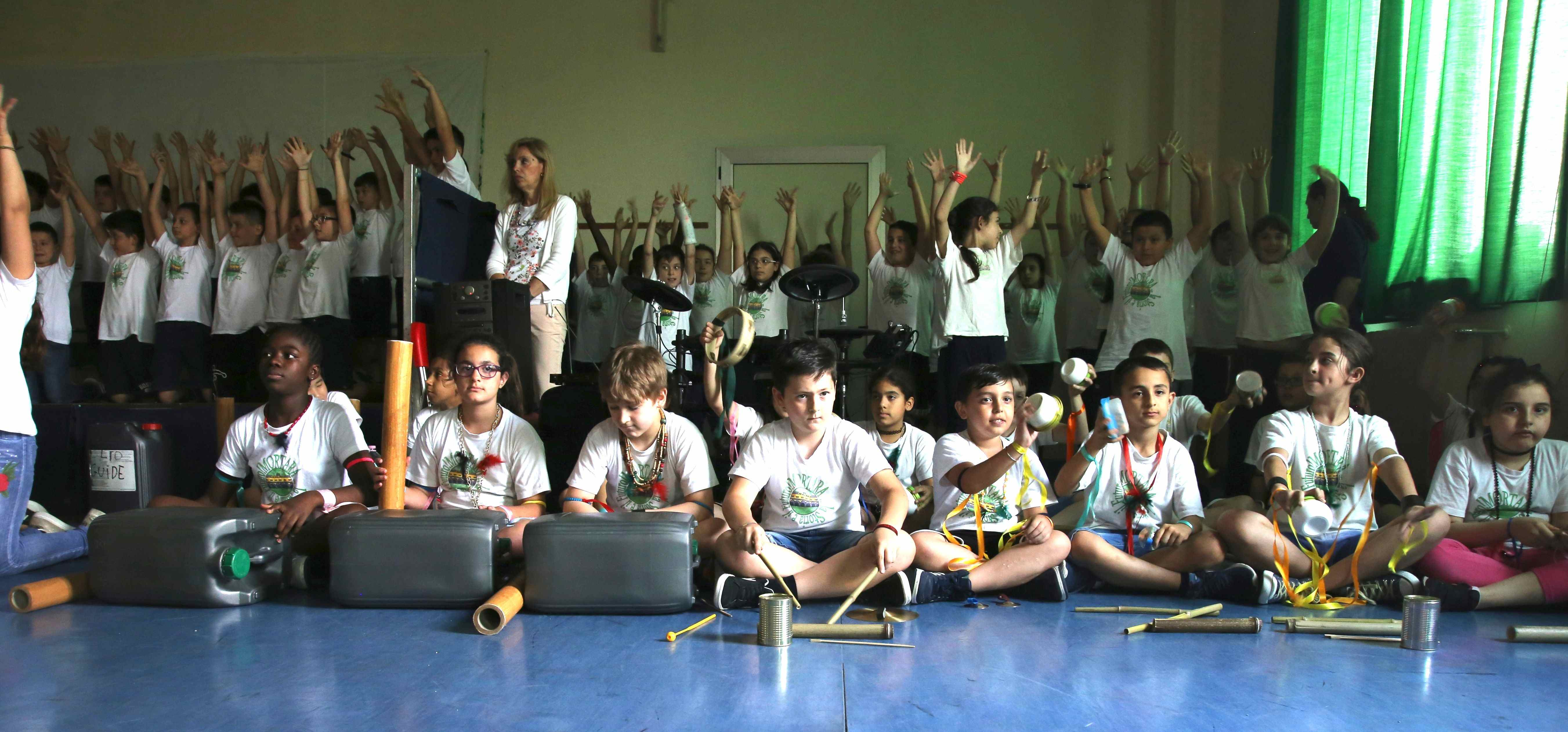 Non è mancato proprio nulla nel saloncino della scuola primaria l’8 giugno scorso: musica prodotta da strumenti costruiti dai bambini, danza, canto, movimento, testi, coreografie accompagnate dalle meravigliose musiche di Bruno Coulais, colonna sonora del film-documentario: “Il popolo migratore” di Jacques Perrain che gli alunni hanno avuto modo di vedere durante l’anno scolastico.