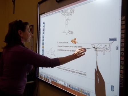 Ecco alcune slide di presentazione e le foto di insegnanti che imparano ad utilizzare la L.I.M.