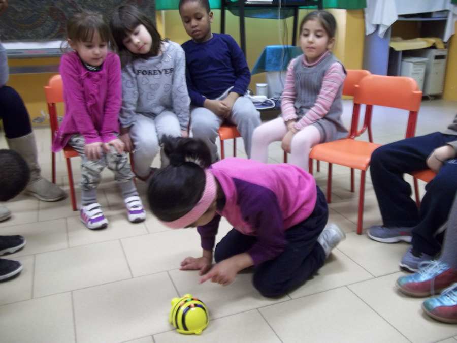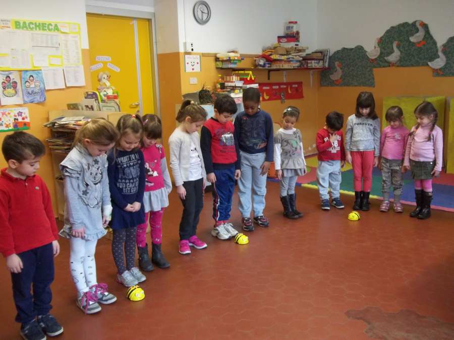 I bambini, accompagnati dalle loro maestre, dai genitori e dai nonni, si sono esibiti su un tema ispirato alla fiaba dei fratelli Grimm, Hansel e Gretel: hanno programmato e camminato insieme ai piccoli robot (le Bee-Bot, le api-robot) in sincronia con la musica.