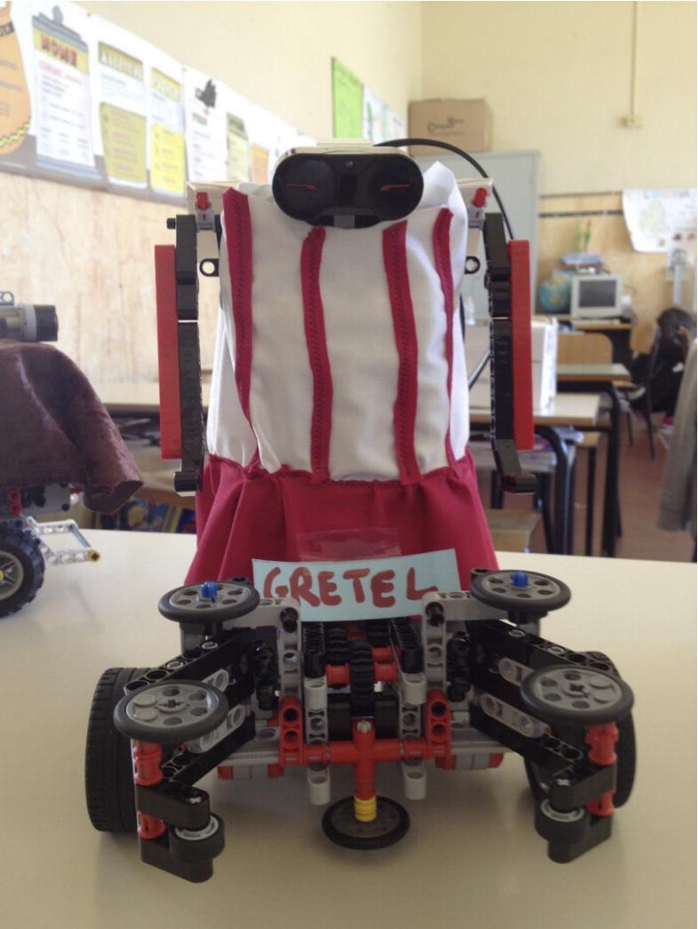 Gli alunni, alla loro quarta esperienza, hanno affrontato prima un’intervista a porte chiuse, senza il docente, dove hanno dimostrato la loro competenza in fatto di programmazione e poi si sono esibiti in una performance di dance-theatre, tratta dalla fiaba di Hansel e Gretel: il robot Gretel doveva trovare, grazie ad un sensore ad ultrasuono, la strega, afferrarla con una pinza per poi gettarla nel fuoco; il fratellino Hansel, invece, rinchiuso in gabbia, sempre grazie ai sensori ad ultrasuono, doveva uscire dalla gabbia e raggiungere il robot-papà che li cercava a fondo campo e che, utilizzando un sensore di linea, non usciva mai dal palcoscenico.