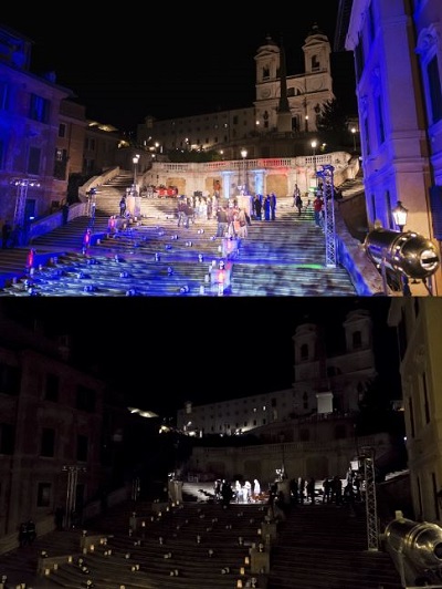 | Fulco Pratesi (presidente del World Wildlife Found) e l’attore Riki Tognazzi spengono le luci della fontana di Trevi a Roma |